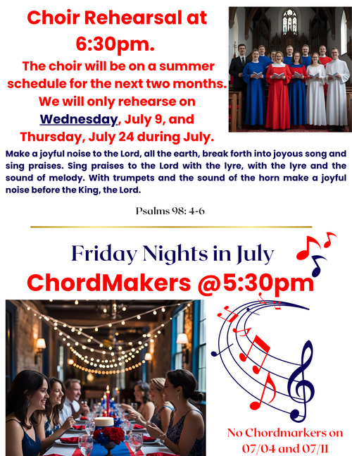 The July Church calendar is now available. Click the button below to view upcoming events and activates for the month.