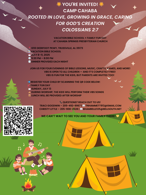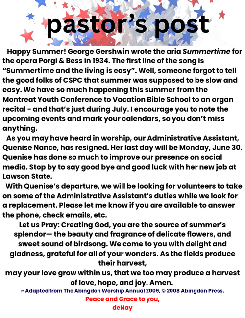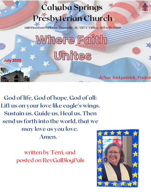 Hello, Cahaba Springs members, friends, and visitors. Join us Sunday, June 29th at 11 for worship in person or at home on YouTube or FaceBook. We are led by Liturgist David Perry and Pastor deNay Kirkpatrick Click to see our readings from